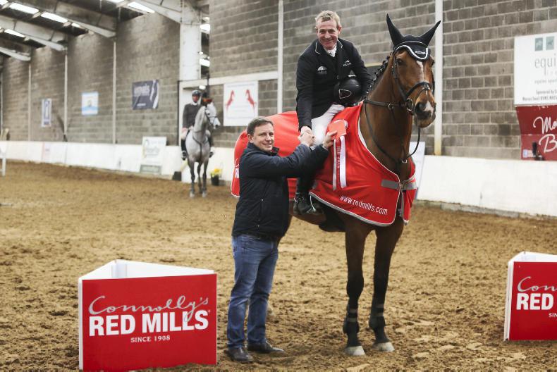 John Floody and Ballyknock Diamonds, winners of the Connolly's Red Mills Spring Tour at Killossery Lodge receive their prize from John Maher of Connolly's Red Mills (Photo: Laurence Dunne/Jumpinaction.net)