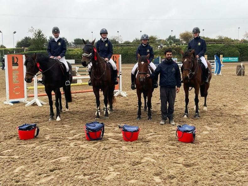The TRI Equestrian Open team winners from St Marys New Ross: Milchem Havana (Eva Kent), Redhouse Aprils Perl (Ava Donovan), Autumn (Martha Power), Tomello (Katie Costello), pictured with host Mathew Pereira of Boswell Equestrian