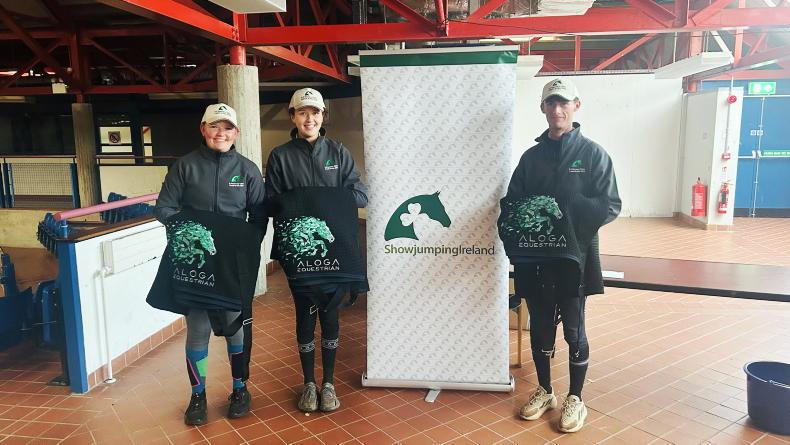 Maeve Coffey, Lauren Quinn and Oisin Hogg, the most improved and most engaged riders at the ShowJumping Ireland National Training Bursary Clinic held at Castle Irvine