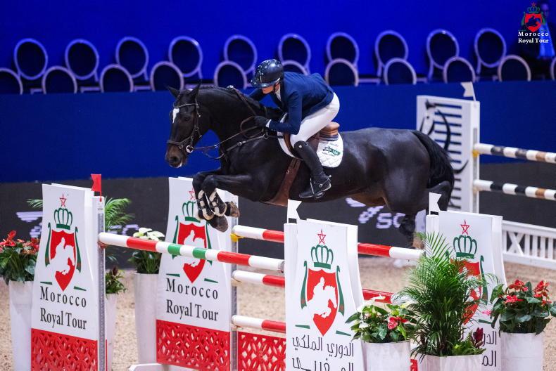SUNDAY was a good day at the office for Westmeath’s Francis Derwin, when he steered the 11-year-old chesnut gelding Flexi K (ISH) (Flex A Bill (ISH)[TIH] x Deeply Dippy K (ISH) x Luidam (KWPN); bred by Knightfield Stud) to win the four-star 1.50m Jump-off class at the Morocco Royal Tour in El Jadida. From 23 starters, just five jumped clear first time out to secure their chance to jump again. All but one of them kept all the poles intact second time round, with Derwin the fastest of them in a time of 33.18, despite being first to go in the jump-off. His nearest challenger, Italy’s Emanuele Guadiano on Chalou’s Love PS was over a second behind in 34.47.
