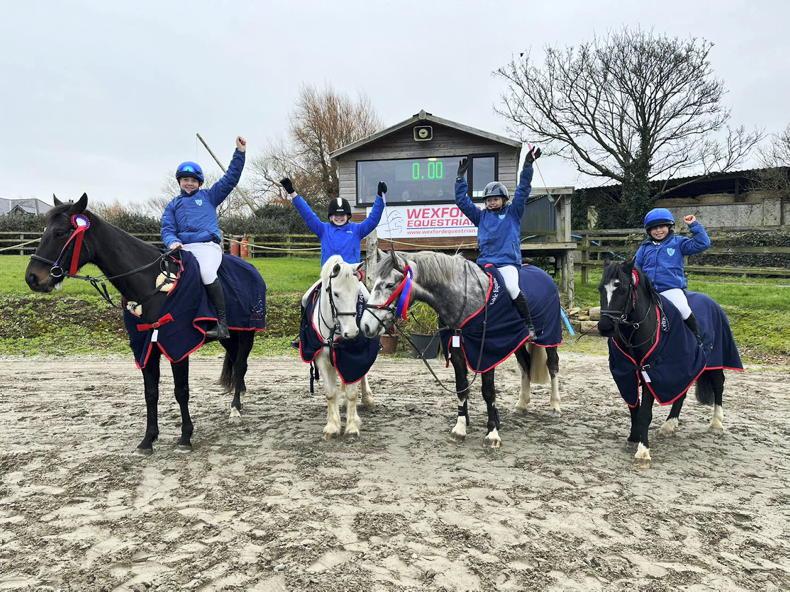 The trip to Wexford was well worthwhile for the team from St Peter’s College, Dunboyne when it claimed the first prize in the Novice Teams event. Inchydonell [Lily Knapik], San Francisco Clover [Jeorjia Knapik], Slane Twinkle Star [Emily Michael] and Changing Course [Sadhbh Finn] comprised the team. Gorey Community School’s novice team were runners-up. Gorey Community School The Mighty Man [Shayna Glynn], Peppard’s Castle Donnie [Alexandra Cassidy], Daisy Daisy [Amber Farrell] and Chalk Knight [Susan O’Brien] were Gorey’s representatives. Local School, Loreto Wexford claimed third place. Its team was Hobbinstown Hero [Kate Jordan], Clogorrows Sally [Aoife Creane], Bells Nugget [Isobel Walsh] and Shakespeare Romeo Montague [Cora Finn].