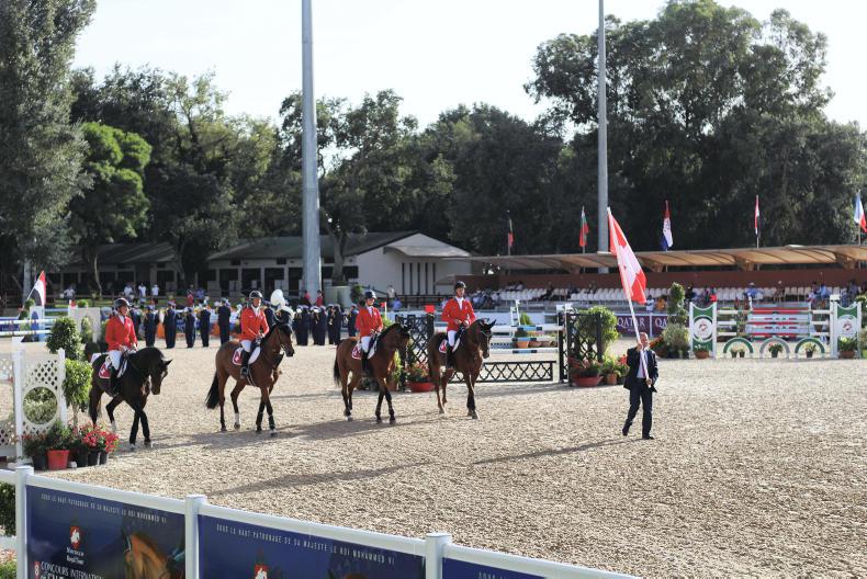Team Morocco parade in front of the enthusiastic home crowd before the FEI Nations Cup (Photo: Judith Faherty)