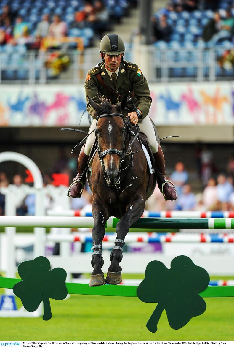 Capt Geoff Curran from Fenor in Waterford took the winner's prize with the Minister For Defence's Irish Sport Horse Shannondale Rahona. They produced the fastest of three double clear rounds (48.82) in the nine horse jump-off.