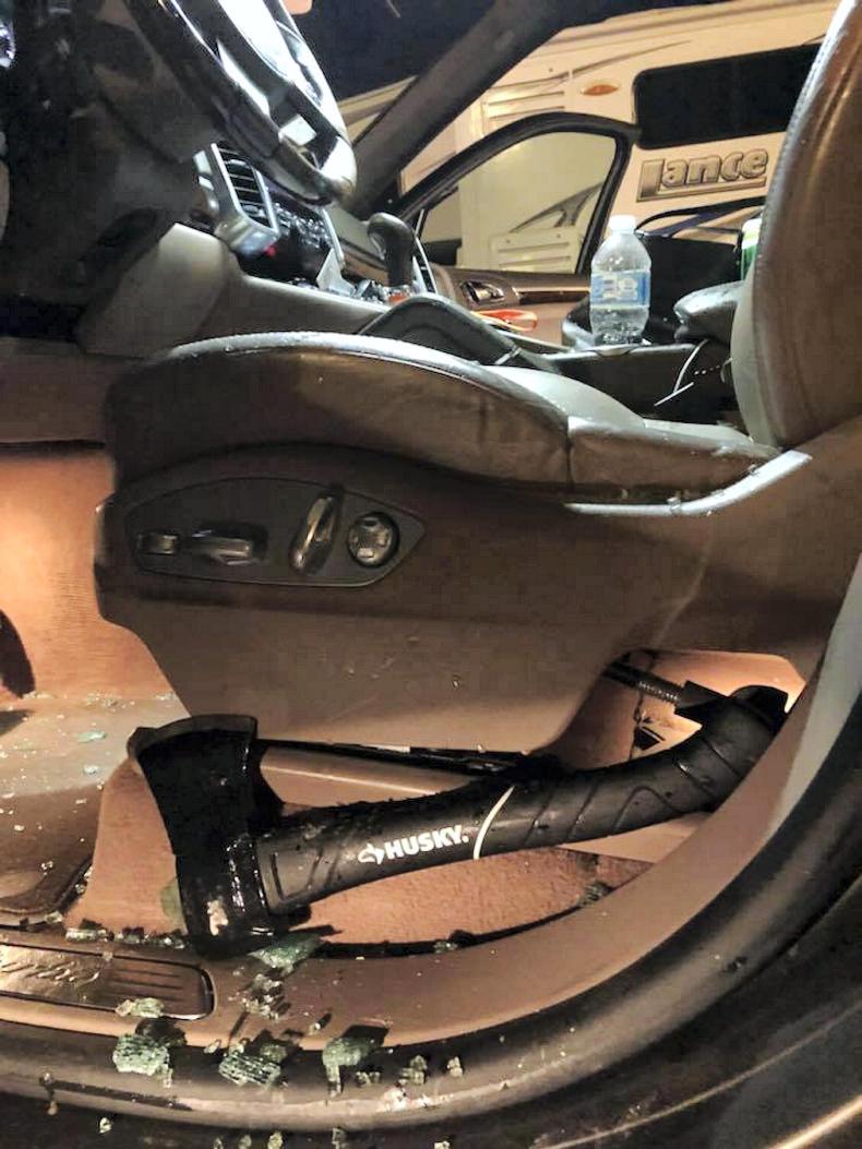 The couple, who are coaching students at the Maclay Championship finals, taking place in Kentucky Horse Park, were staying in the Residence Inn by Marriott Lexington North and on leaving the hotel at 4am, a man, dressed in black and wearing a mask, approached their Porshe Cayenne and smashed the driver’s side window with an axe.