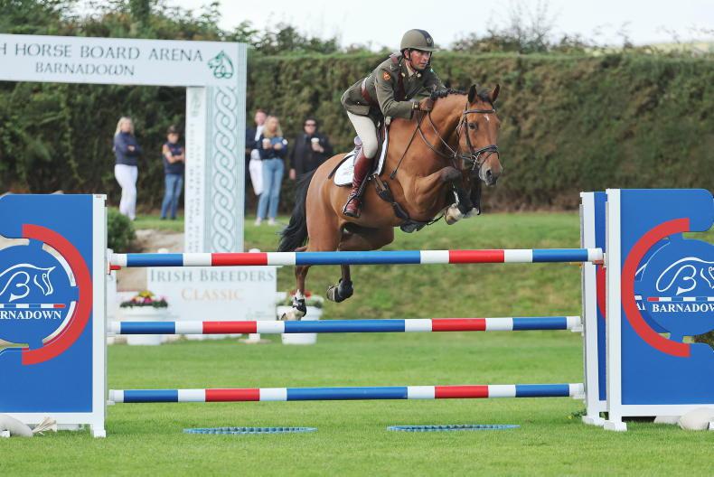 saw a field of 62 competitors on Thursday at the Irish Breeders’ Classic in Barnadown, with 17 riders lodging a clear round. Taking the win was Comdt Geoff Curran and Derrycush when he was fastest in a time of 62.38 seconds. Owned by the Minister for Defence, the 10-year-old Emerald Van’t Ruytershof gelding was bred by Alfie Hillen out of the Aldato-sired ISHD Caldato.