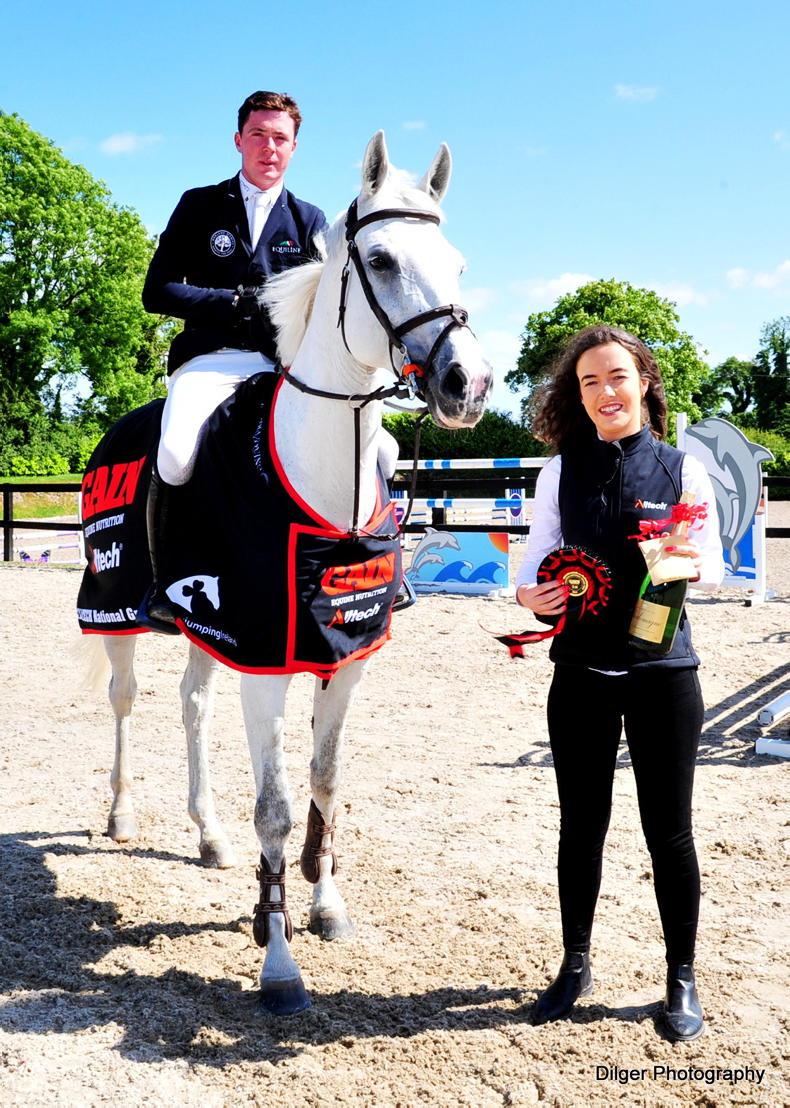 Laura O'Connell from Alltech Ireland presenting Francis Derwin with his prize after he won the Gain Alltech National Grand Prix at the Banner Equestrian Centre \ Dilger Photography