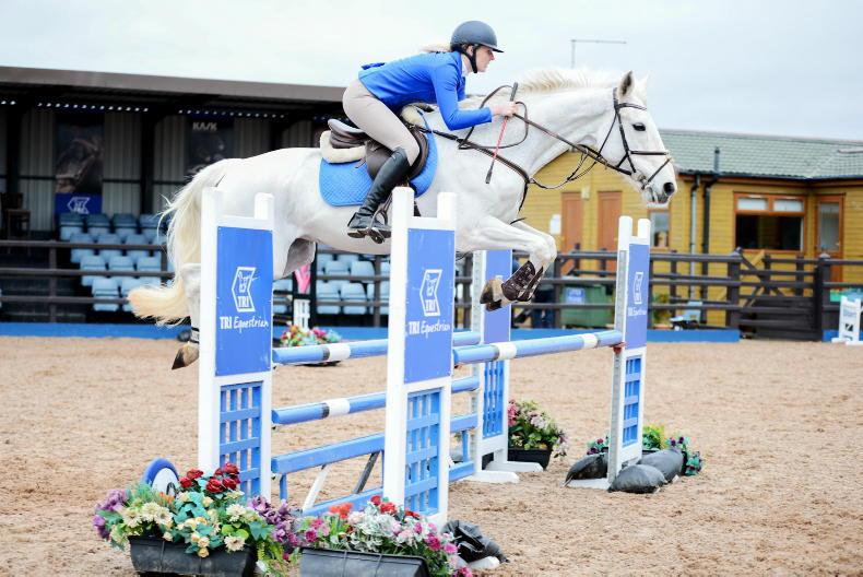 Rebecca Mooney riding Knockroe Decies Girl, winners of the 1.10m at the TRM Showjumpers Spring Tour at The Meadows EC \ Tori O'Connor