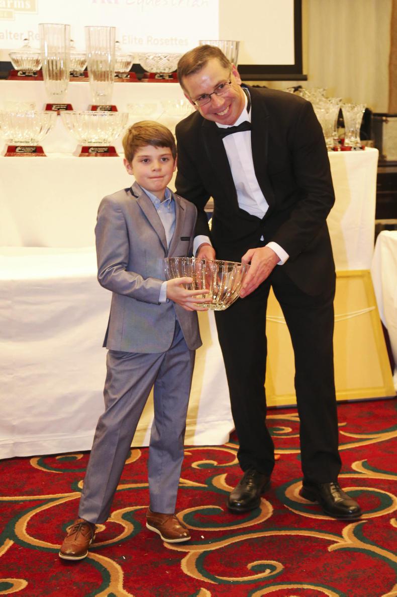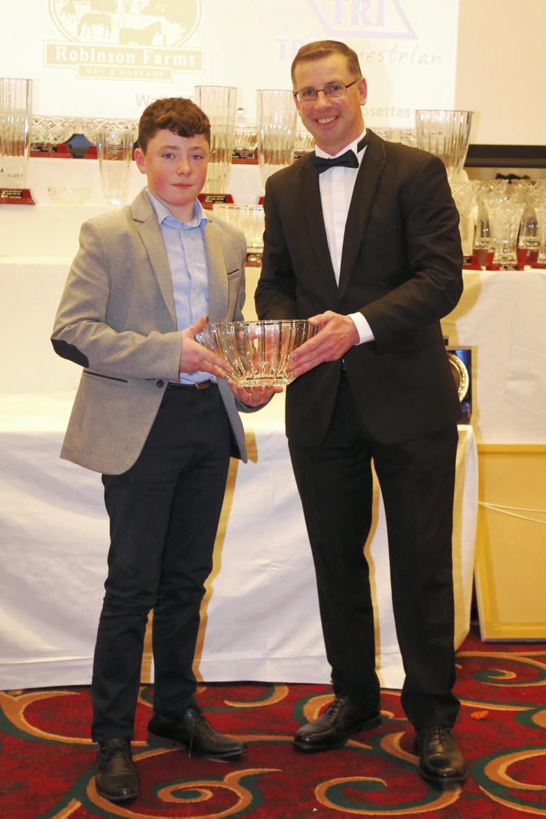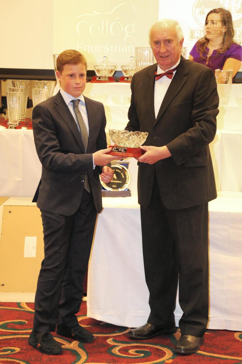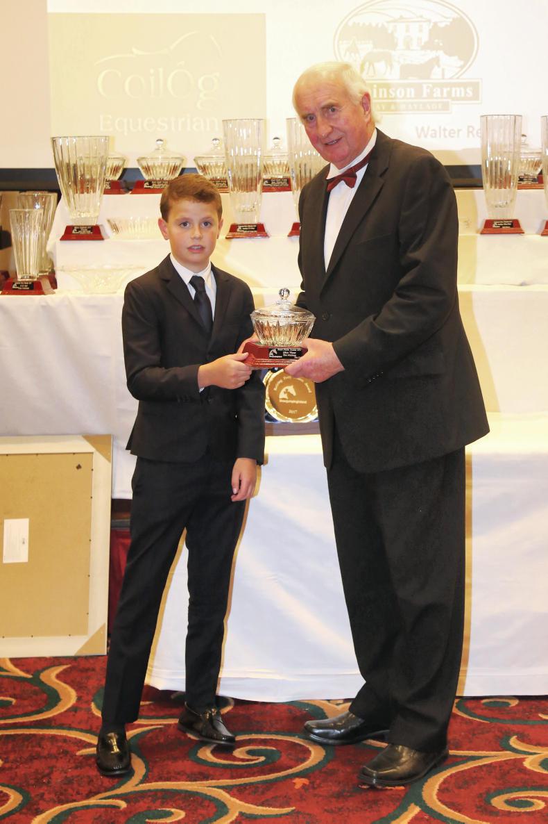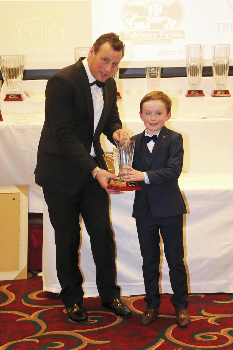 Kian Dore, winner of the under 10 Coolmore Stud Pony Premier with David Wachman (left)