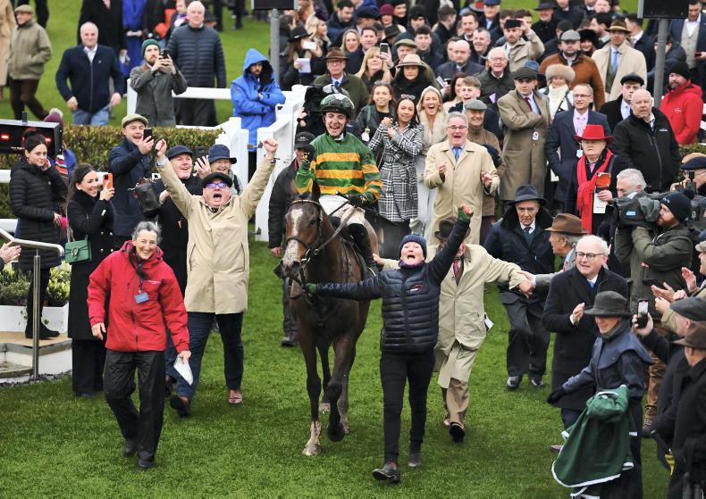 Also on Thursday, Co Tipperary trainer Sam Curling and rider Pa King combined to record their first Cheltenham Festival successes when the Alfred Sweetnam-owned and bred Angels Dawn landed the concluding Fulke Walwyn Kim Muir Handicap Chase for amateur jockeys by a neck. The eight-year-old Yeats mare was led up by Correna Bowe who has been working with Curling for the last two and a half years but was paying her first visit to the Festival.
