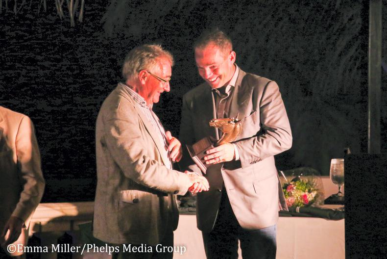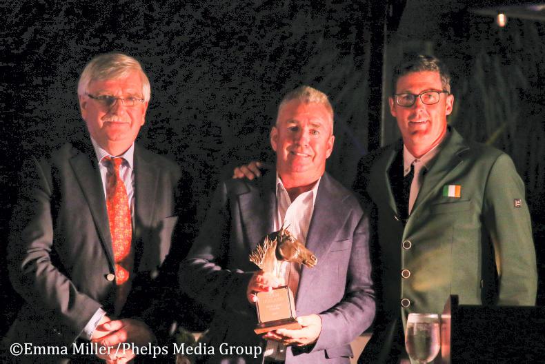 Cian O’Connor was invited onstage to present the award in recognition of ‘Outstanding contribution to Irish show jumping in the USA’ to Tom MacGuinness of Horseware Ireland.