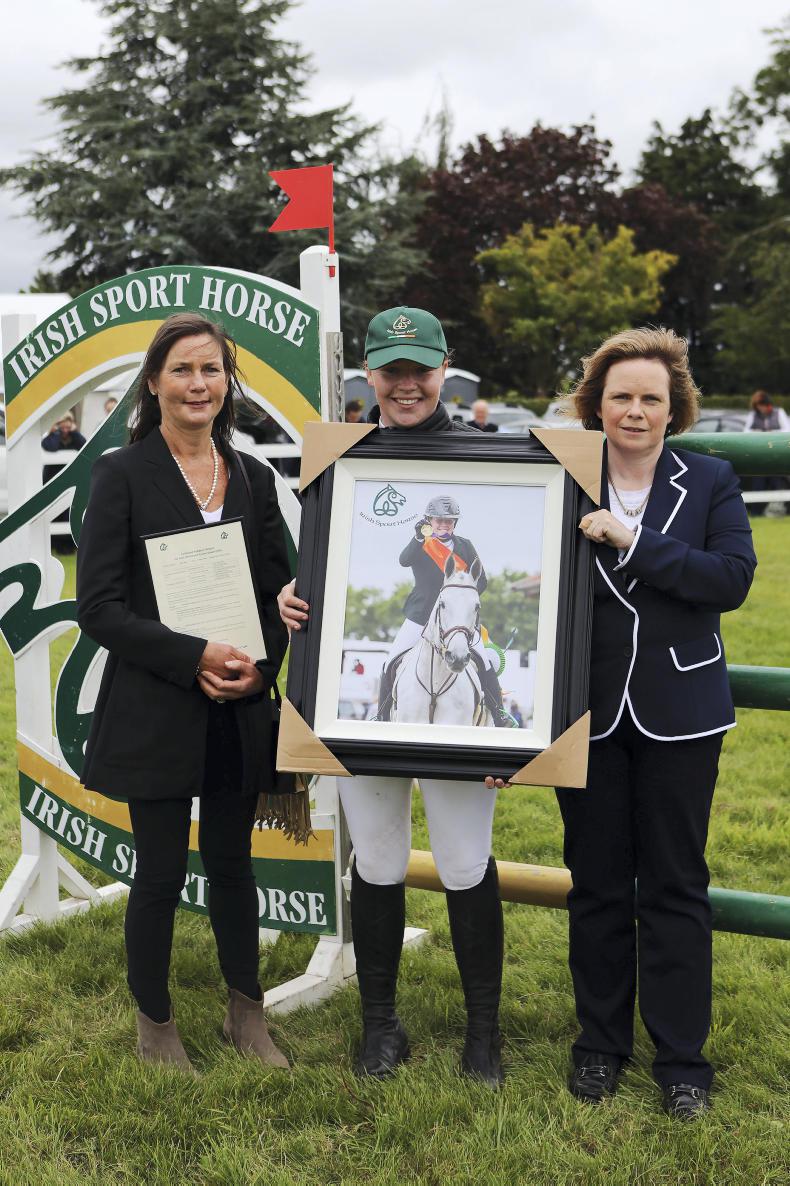 Among the special guests was breeder Anne Gannon who bred Kate Derwin’s Junior European Show Jumping Champion AHG Whiterock Cruise Down (ISH). Director of Breeding and Programmes at Horse Sport Ireland, Alison Corbally, presented Anne Gannon with a special award. Rocky’s dam Whiterock Touch (ISH) is now classified as a select five-star mare in the ISH Studbook. Gannon has registered over 40 horses with the ISH Studbook. Referring to AHG Whiterock Cruise Down, Corbally commented: “This kind of success epitomises every breeder’s dream – to breed an Irish horse who is produced in Ireland, ridden by an Irish rider, winning gold at the highest level of international competition.”