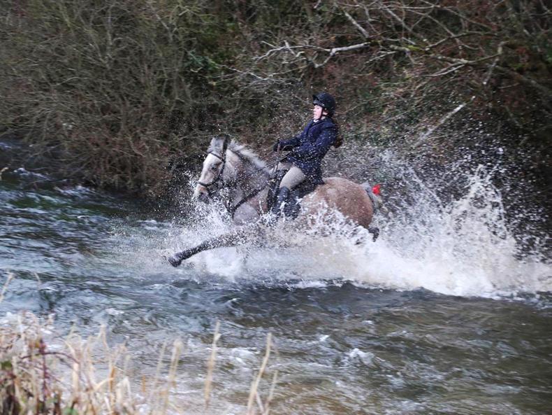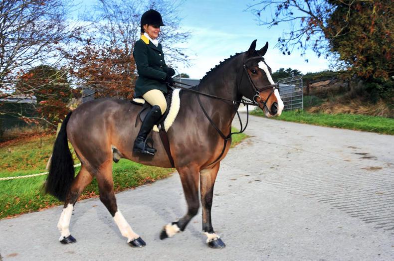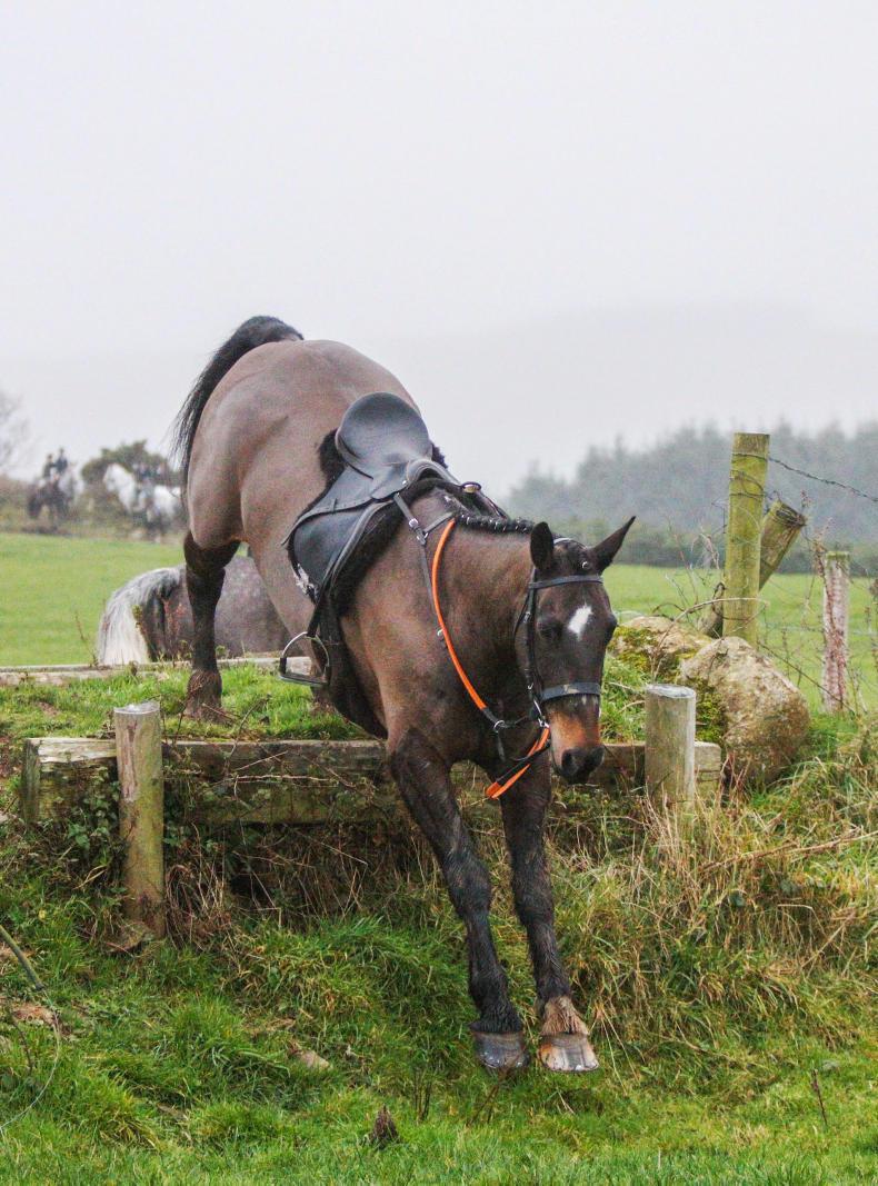 Billie Mae Geoghegan doing her river dance on Clifford, a 4-year-old Connemara on his first day out hunting with the Laois Hunt