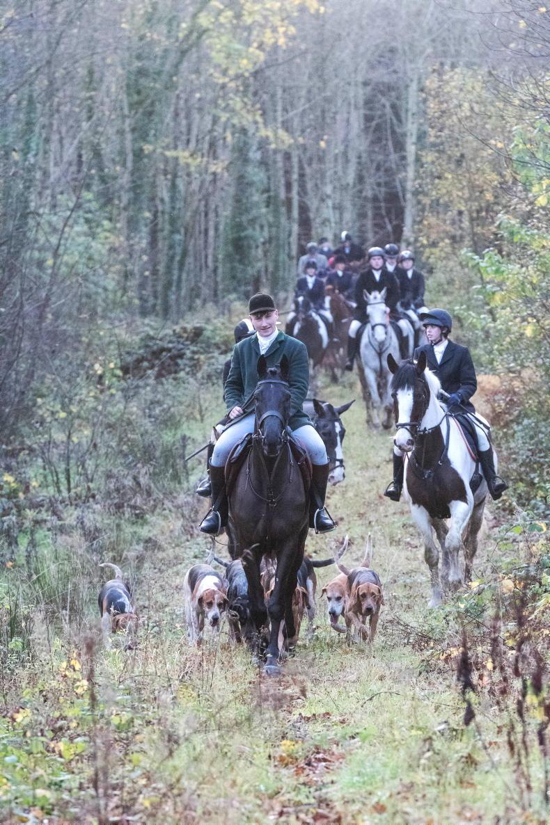 Westmeath Harriers huntsman Dean Enright leads the field at Cloughan \ Mark Wiseman