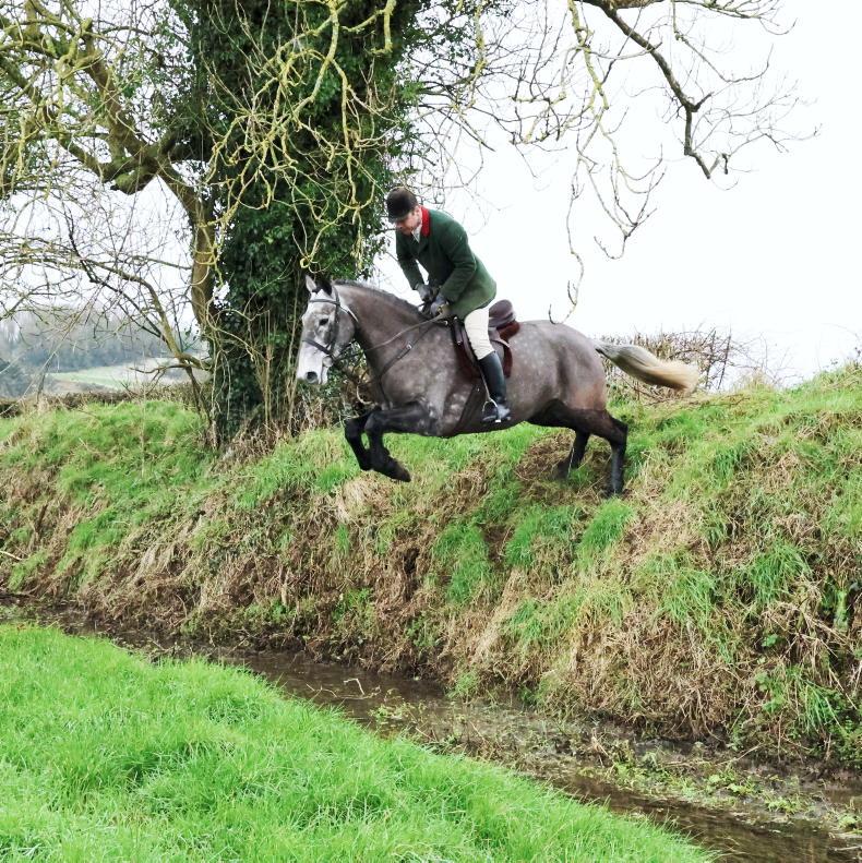T J Mullane taking on the bank with his lovely cob, while out with the Limerick Harriers at Sheehan’s Cross \ Catherine Power