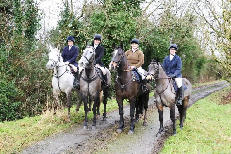 Jo Turvey, Danielle Lenihan, Ciara and Sophie Mullane turn out for a meet with the Limerick Harriers on a very wet day at Sheehan’s Cross \ Catherine Power