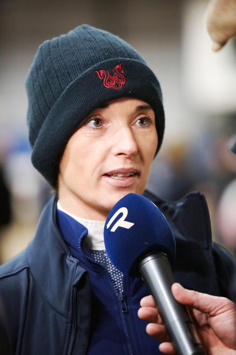 Katie Walsh of Team Navan Racecourse is interviewed by Racing TV ahead of the HRI Treo Eile Thoroughbred Classic \ Siobhan English