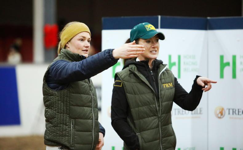 Sarah Gaynor and Felicity Ward of Team TRM discussing tactics ahead of the HRI Treo Eile Thoroughbred Classic