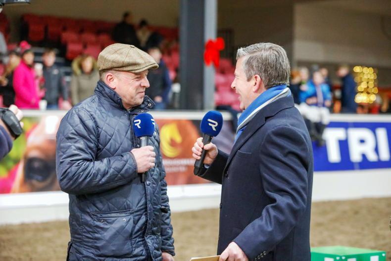 Kevin O'Ryan of Racing TV chats to MC Brendan McArdle ahead of the HRI Treo Eile Thoroughbred Classic \ Siobhan English
