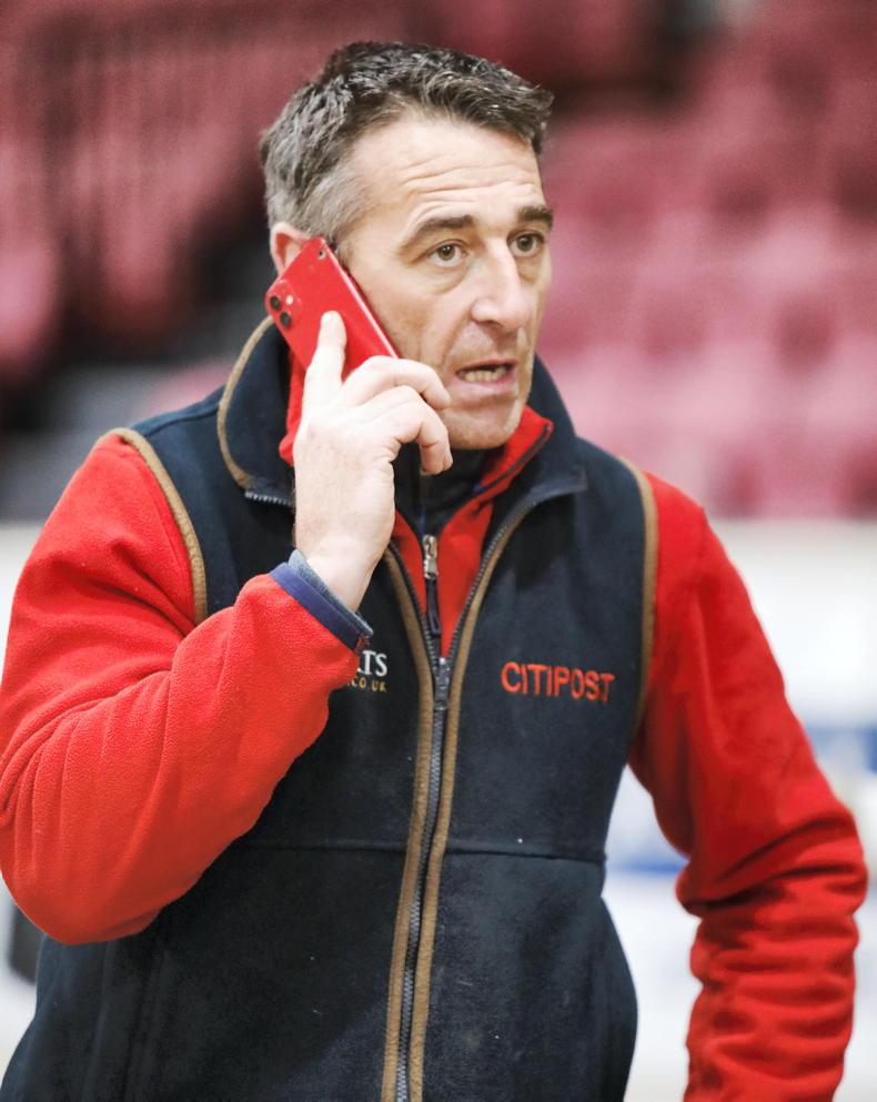 Davy Russell taking a quick phone call during the course walk for the HRI Treo Eile Thoroughbred Classic. Davy was a member of Team TRI Equestrian \ Siobhan English