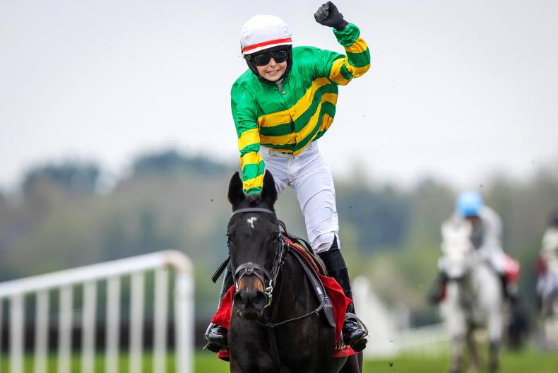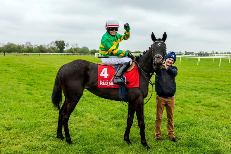 Jake Cromwell put in a flying dismount from the speedy Smokey Lady II after winning the Pony Club exhibition race at Fairyhouse