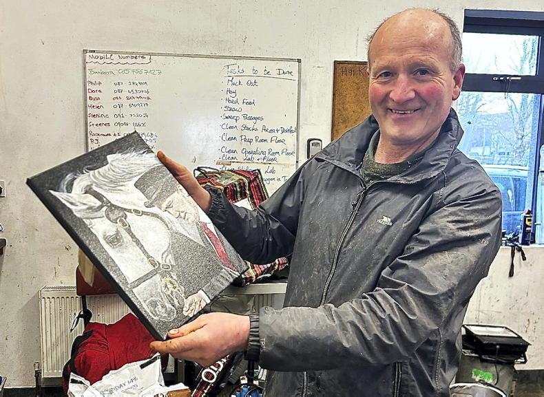 Rachel Parry's painting of Claregalway ‘supervet’ Philip McManus with Silver Shadow was a big draw to her stand at the RDS last week