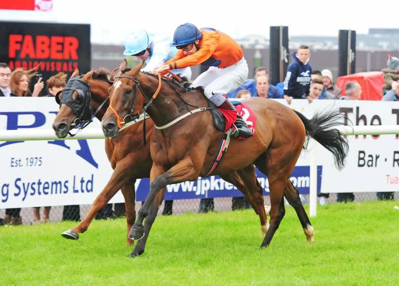 Baraweez, pictured winning the Irish Stallion Farms EBF "Ahonoora" Handicap last year, will run in the Com Quinn BMW Mile Handicap (Photo: healyracing.ie)