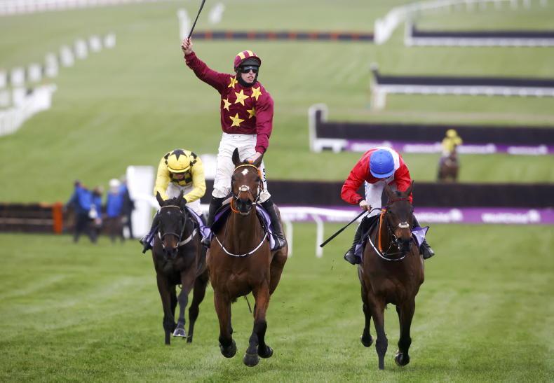Jack Kennedy celebrates passing the line in front on Minella Indo in the Gold Cup \ Healy Racing