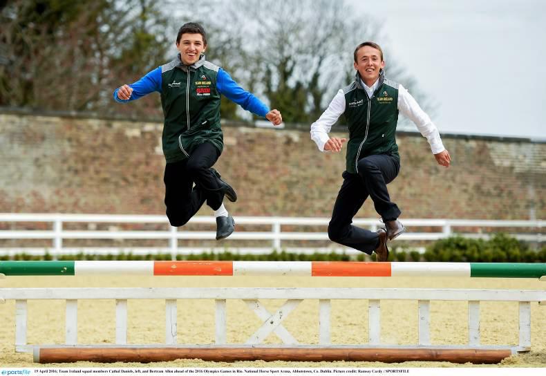 Young Guns: Event rider Cathal Daniels (19) from Galway and Wexford show jumper Bertram Allen (20) have some fun at Abbotstown