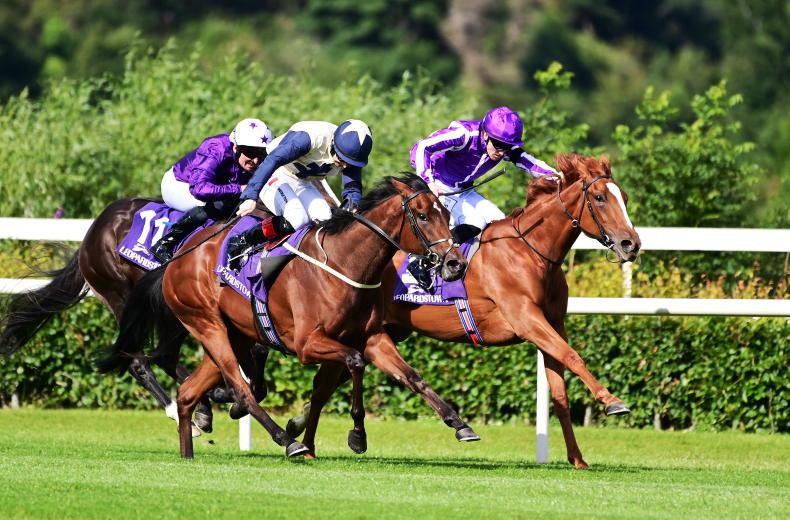 Dermot Weld’s once-raced Curragh maiden winner Katiba was just a head away in third, with Geometrical a disappointing last of five.